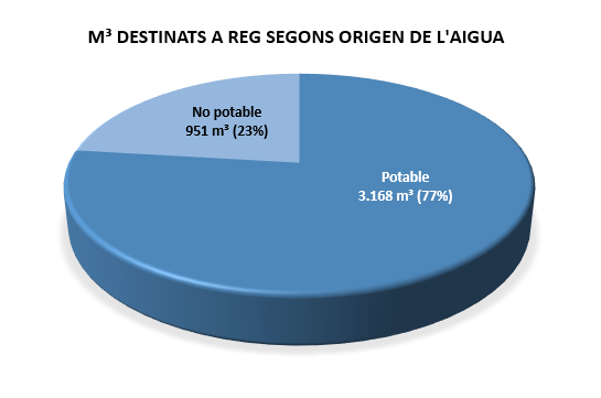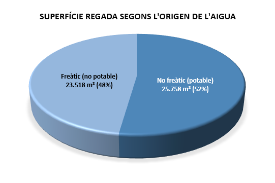 Actualment, el 64% de la superfície, que requereix d’algun tipus de suport de reg, està regada amb aigua que prové de l'aqüífer del nostre subsòl.