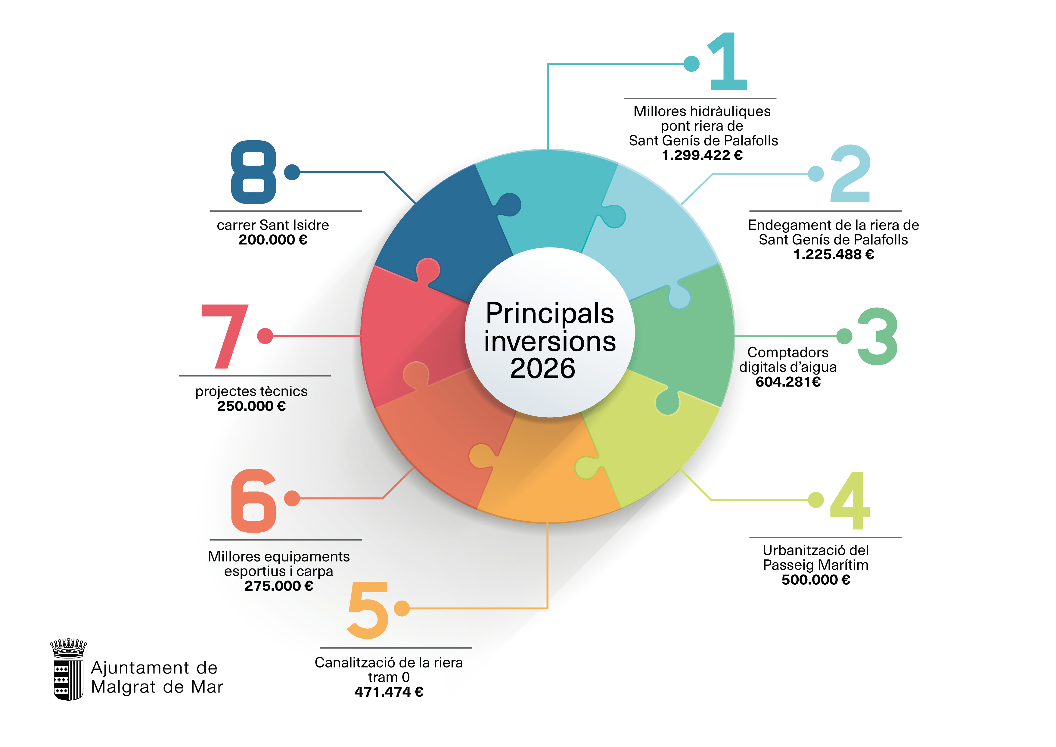 L'equip de govern, format pel PSC, JXM i MeM, va aprovar ahir vespre en sessió plenària un pressupost municipal de 30.226.966 euros per al 2026. Aquesta proposta econòmica suposa un increment del 12,9% en relació a la d'enguany, que és de 26.775.200 euros. S'ha previst destinar 5.810.665 euros a inversions, entre les quals destaquen obres de millora al pont i d'endegament de la riera de Sant Genís de Palafolls, així com la posada en marxa de la instal·lació de comptadors digitals d'aigua al municipi. L'oposició, ERC i PP es van abstenir en la votació dels números del 2026, i la CUP va votar en contra.